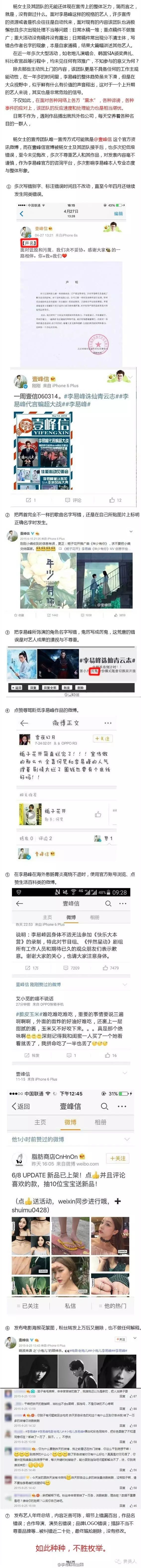 诺,这就是堪称民间福尔摩斯的网友们,给李易峰经纪人列出的11大罪状↓