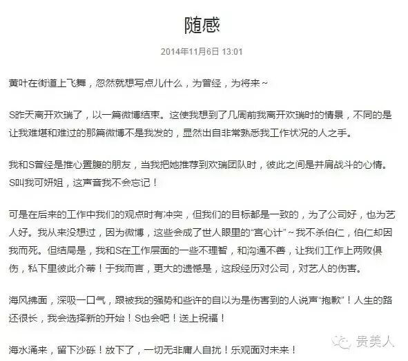 因为当时有传言说神马这次手撕经纪人事件是宣传总监孙于夕一手策划发起的,结果孙于夕团队也忍无可忍,一个月后宣布带领宣传团队集体辞职....