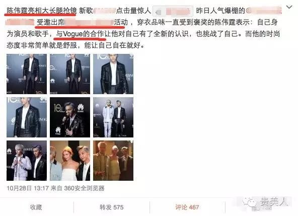 事情是酱紫滴...之前陈伟霆不是参加Vogue十周年活动嘛,结果...活动第二天,这位英皇负责人才发布了活动的微博....↓