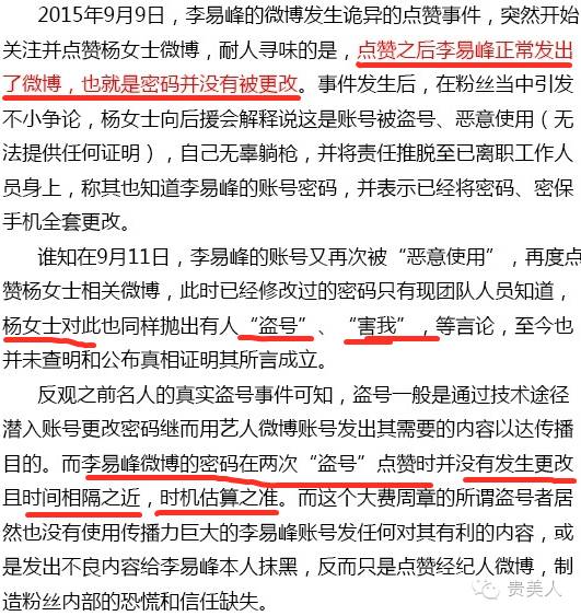 ⑷→所谓“盗号”事件↓很有可能...就是李易峰经纪人杨迦茵自导自演。。。