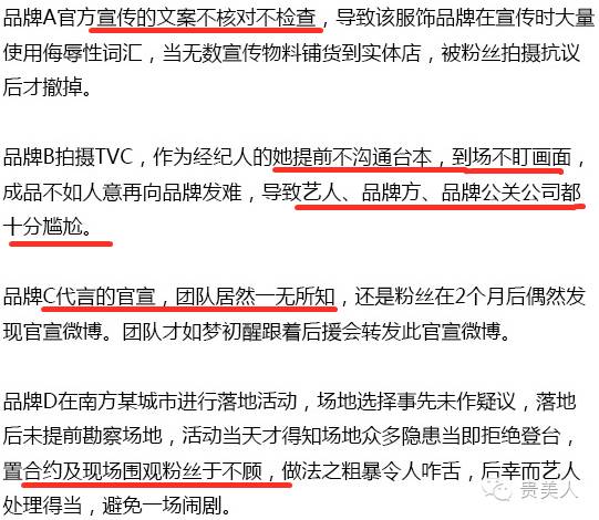 ⑵→粗暴对待媒体和品牌公关,各种甩大牌,档期还安排的灰常混乱↓