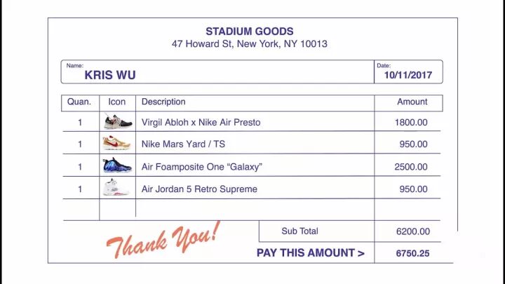 不过,我们今天要探讨的并不是吴亦凡买的四双鞋子有多经典、有多贵,毕竟以吴亦凡的收入能力,4万软妹币对他来说也不算什么,你看他刷信用卡的样子你就知道了。邀请他上节目的这间鞋店stadium goods才是我们今天关注的焦点。