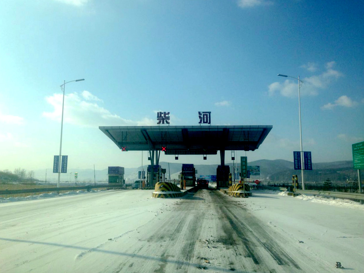在鹤大高速行驶16公里在柴河高速路口下高速,出柴河高速路口后右转走柴河支线奔柴河方向行驶