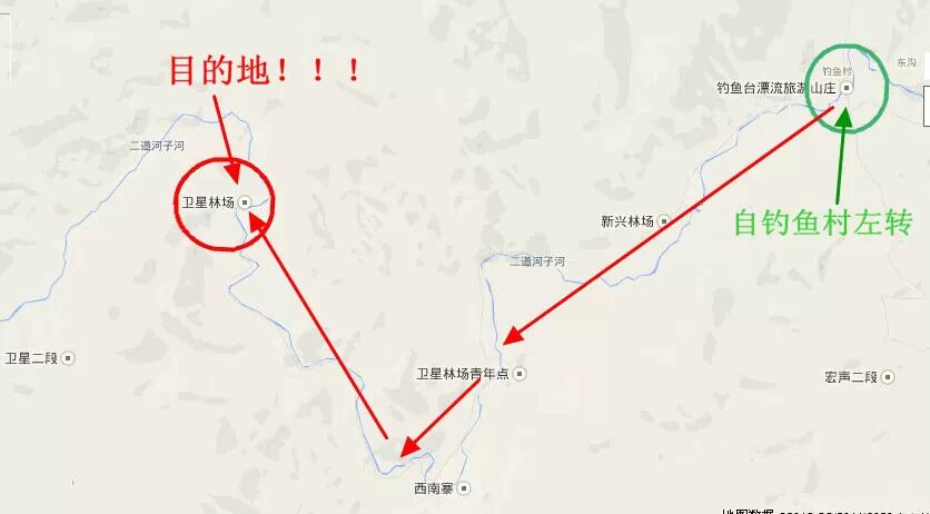 到达钓鱼台村向左转奔雪村方向,还有24公里到达目的地卫星林场