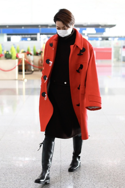 这件红色的大衣外套是真的很好看的,因为颜色特别的亮的,里面配上一条黑色的裙子的话更会显得非常的好看的了,这两个颜色搭配在一起就会显得比较的和谐啊。而且穿在毛阿敏的身上整体看起来更加的有气场。