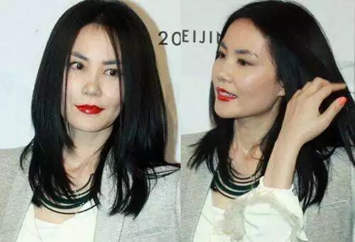 莫文蔚也是,牙不是很好看,红唇强调了她的缺陷: