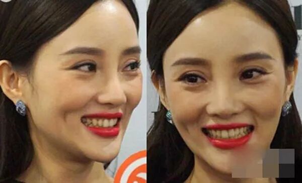 同理李小璐,没整牙前也是,涂红唇真的很辣眼睛了……