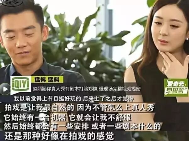 赵丽颖回答:真人秀节目其实并不真实,也是有剧本的。如此老实的回答,估计除了赵丽颖也没有别人了。