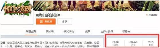 开播微指数热议度达20万,位列百度风云榜综艺榜第二名,爱奇艺自有泡泡社区讨论量6.1万,微博话题#我们的法则#阅读突破55.8亿,子话题阅读量创新高,其中#黄子韬卖萌#吸引超4000万的阅读。