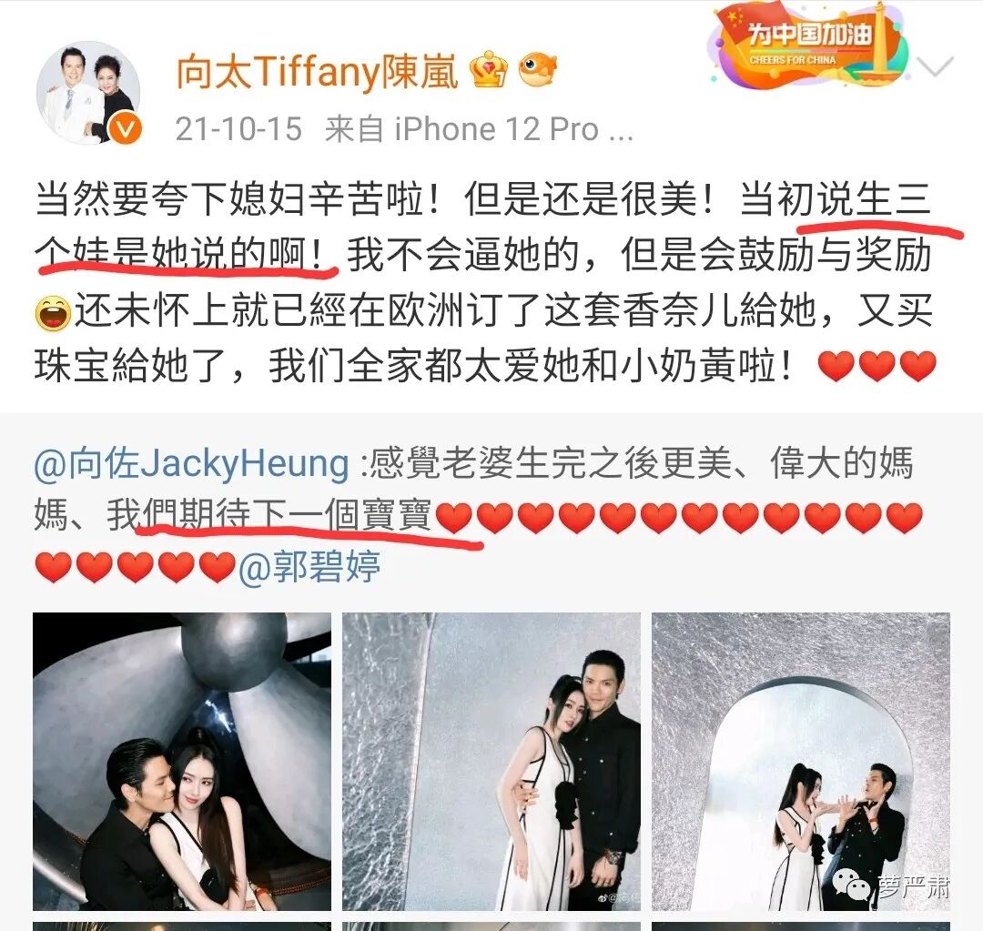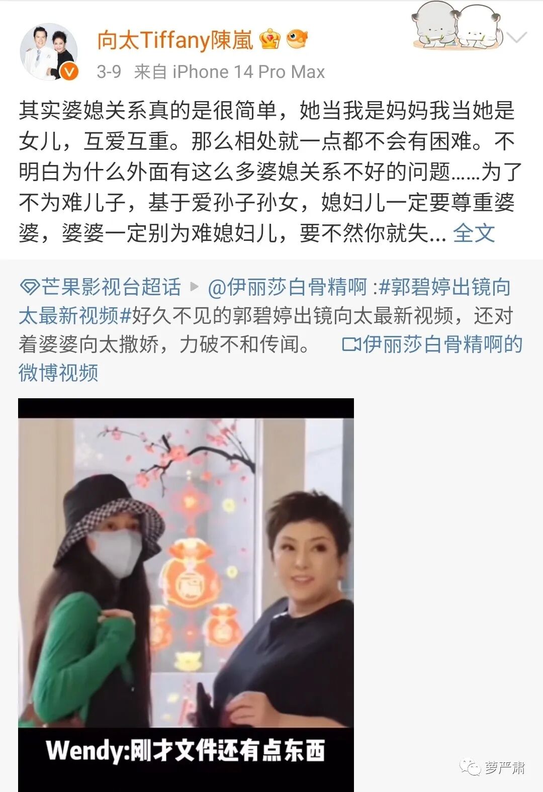 真正的郭碧婷呢?消失了吗? 萝严肃 港台女星 2023-09-13 21:09:45 149 创作不易,用心坚持,欢迎请BaGua喝几杯爱心咖啡!打赏并支持本文 打赏并删除本文 转载或者合作请联系[email protected]感觉早就已经写过郭碧婷婚姻了我怎么又开始关注她了!可能我才是隐藏的郭碧婷颜粉!我真的好心痛!是这样的,今天看到郭碧婷和向佐因为合作电影《门前宝地》去国外参加电影节的照片,真实地被震撼,这是郭碧婷吗?她跟向佐颜值差这么多怎么会渐渐有了夫妻相??甚至有了跟向佐一样油腻的表情……仔细看,好像五官也是当初的五官,但是放在一起就:???这谁?还我们妹花郭碧婷啊!这也不是第一次网友们惊呼“郭碧婷怎么变样了”。上个月就有人对比过,说郭碧婷的视频截图好像向太。穿衣打扮宽松,甚至连表情也有点像。这难道真的有什么玄学吗?我觉得更难受的是,自从跟向佐开始谈恋爱,郭碧婷这个人,她自己,好像就渐渐消失了。看郭碧婷的微博,已经想不起来她是什么时候上的半年锁。现在页面上只有一条内容,是她转发自己和向佐主演的电影《门前宝地》的宣传。再往下一拉就是那句提示“仅展示半年内的微博”。就连这仅有的一条宣传也是转发别人的,带上表情包——这表情的本意应该是振奋和期待,可是看了只觉得郭碧婷在敷衍,唐诗逸都发了完整一句话,郭碧婷只有礼貌转发。她自己究竟怎么想的呢?是从哪一天开始,郭碧婷自己说的话,发的照片,就没有了。只有向太、向佐在发声,有时候是她爸爸在说话。去年开始郭爸也不发微博了。郭碧婷和向佐的恋爱就是在带父母的综艺的《最美的时光》,向太明显表现得比儿子还积极,然后郭碧婷和向佐就恋爱结婚再多上了几次真人秀。里外里一共四个节目。好担心向佐以后还想上《爸爸去哪儿》,向太说不定还想跟着客串。(注:《京城十二时辰》只上了一期)几年后,网友印象最深刻的真人秀片段,向佐路怒症,吓坏郭碧婷。订婚、晒钻戒、结婚、晒婚纱照、解释结婚注册为什么拖延了、宣布怀孕……郭碧婷和向佐每一个环节,都是向太在发微博、上新闻。别的就不回顾了,那时候向太转发郭碧婷的微博还会改郭碧婷的文案……郭碧婷最后一次自己原创的微博上新闻,可能还是2019年12月去烫头发,上新闻的原因是向太评论郭碧婷,烫头发怎么没经过自己同意。2020年10月,郭碧婷中秋节在台湾生了个女儿。一年之后,2021年10月,向太就大张旗鼓地点赞各种接男宝微博。那边厢,向佐好像暗示郭碧婷怀二胎了。到了2022年7月6日,郭碧婷被爆料生二胎了,是个男孩。所以时间线是:2020年10月生女儿,2021年10月再怀孕。2022年7月生二胎。这紧锣密鼓的节奏,郭碧婷辛苦了。本来八卦群众已经不怎么关心郭碧婷生二胎的事情,2022年7月21日媒体就公布了向佐疑似出轨的画面,说郭碧婷还在哺乳期向佐就带另一个女子回自己和郭碧婷的婚房。过了几天又有网红加码爆料说2021年8月向佐也在出轨,数不清多少次出轨,并提供向佐和女性视频聊天截图。向太方面两度否认向佐出轨,说拍到的女性只是工作上的大姐姐,又说爆料的向佐聊天记录是假的,她要去起诉。(一年了,好像还没起诉。)“向佐出轨”风波几天后,郭碧婷爸爸对网友解释:“这你可别乱说,人家把媳妇照顾得好好的一点也没亏待,事实就是事实。”当网友说“支持郭碧婷和向佐”的时候,郭爸又说:“我只支持我女儿。”各种议论之下,郭爸爸删了之前的微博,重新发布:“我不是你们想的那种人,有做父亲的会不护女儿吗?”2022年8月,郭爸爸再度回归微博,更新美食照片,评论区继续提女儿的婚姻和婆家问题:“向太哄好了。”郭爸爸又和网友吵了起来:“就一定要这么瞧不起人,你随随便便的一句就够伤人的,你们爱怎么想怎说我也没法了,我就不再上微博了,免得再看见恶心的评论。”之后再度清空微博。通常网友嫌弃明星的时候会说:啊你不想让人看你八卦,你就退网啊。没想到是郭爸真的退网了,到现在还没回来。在郭碧婷结婚前郭爸爸微博很活跃,经常晒美食和厨艺,也发女儿的旧照。加上郭爸爸本人还挺帅,所以很受粉丝欢迎。本来郭碧婷不怎么发社交状态之后,粉丝从郭爸微博那边还能知道点情况,现在就什么都不知道了。无人在意的角落,郭碧婷工作室从2022年2月1日起就停更了,这是工作室官微最后一条微博。再往前翻也只是发了好几个月的节日祝福和鸡汤,最后一次发郭碧婷工作图是2021年11月。而郭碧婷的Instagram账号2019年5月就停更了。最后一条是广告代言照片,而且关闭了评论区。PS:今年1月,这个账号取关了向佐。总之,这么一算,来自郭家的声音就从互联网上消失了……消失了。只有向太和向佐动不动就拉家里这个大美女出来,证明自己很幸福很优越。向佐秀恩爱,晒孩子。向华强说珠宝都给孙子和儿媳妇。(这不就是给孙子的意思。)向太那边当网红拍小视频也拉着郭碧婷,视频里的郭碧婷戴着口罩看不出表情,向太转发这条视频又说自己家绝对没有婆媳关系问题,当儿媳妇是女儿……总结一下就是:向太晒向太晒,向太晒完向佐晒,向太向佐轮流晒偶尔向华强参与晒……至于郭碧婷现在为什么会像向太,主要是穿衣风格不是她过去了。周岁宴的时候就穿很宽松的衣服。产后恢复和带孩子都倾向于穿宽松是一方面,但宽松的衣服确实是向太最爱的审美。跟向佐一起去国外电影节穿