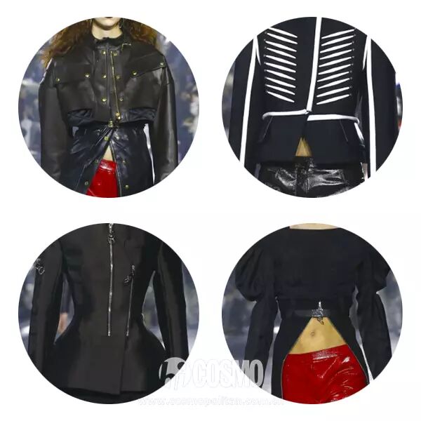 上装的收腰细节则再一次重申的女性腰部的曲线,从外套的剪裁廓形到配饰上的辅助收腰,无不体现着设计师的体贴和细腻。