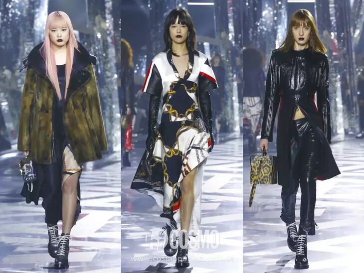 而漆皮、皮草、链条皮带印花的面料则让看客有种穿越各地旅行的错觉,这些风情各异的造型无疑是在表达着Louis Vuitton经典的旅行情节。