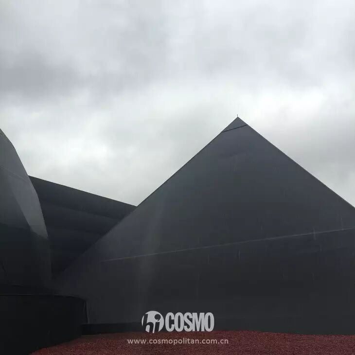 形似金字塔的棱锥、菱纹满布的半球,这次Louis Vuitton的秀场极力展现了几何形的奇妙美感。而室内破碎的镜面、随意倾斜的反光墙柱、幽蓝的灯光,则将秀场环境打造得似几何幻境一般美丽又神秘。