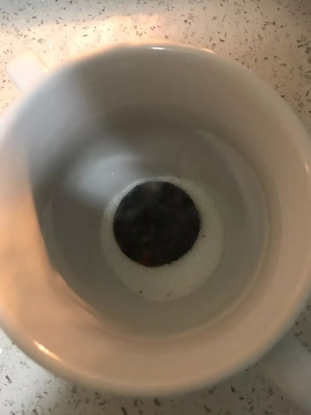 放白砂糖到杯子里,微波炉高火加热2分钟左右,可以以30秒为单位加热,直到闻到焦糖糊的味道,可以看到白砂糖慢慢变成焦糖了。