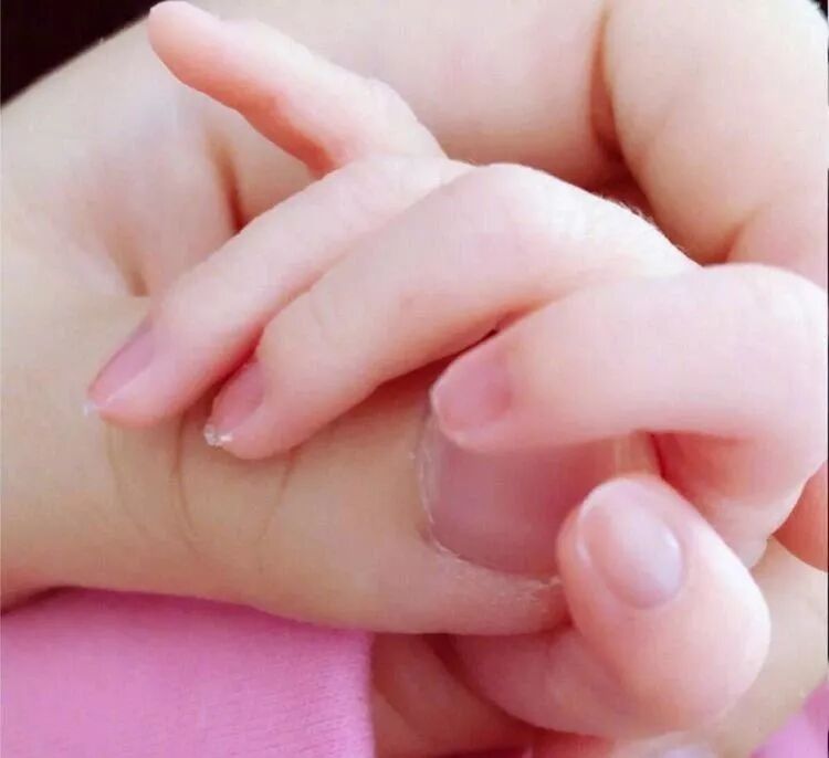 张杰在宝宝出生第一天就晒出两个女儿的小脚丫,今天又晒出宝宝的小手,小公主穿着粉色衣服,手指细长白皙,愤愤的指甲很可爱。