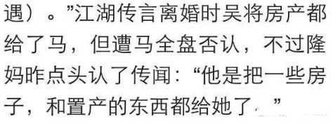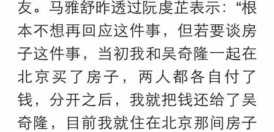 气得马雅舒跑出来回应,说当年房子是和吴奇隆AA制买的,离婚后房子归她,但吴奇隆的那份钱已经还给他了,并且连同婚戒也给了吴奇隆。