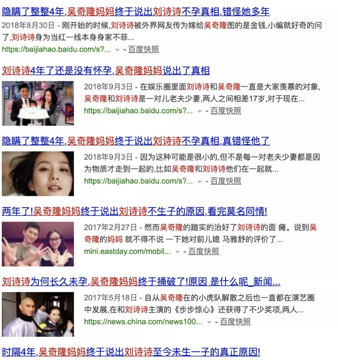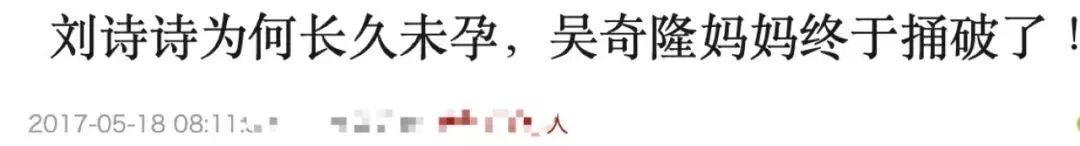 网上一搜吴奇隆妈妈和刘诗诗的关键字,第一时间出现的就是刘诗诗不孕不育的消息。