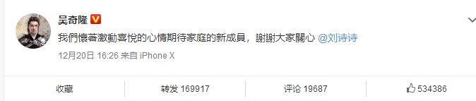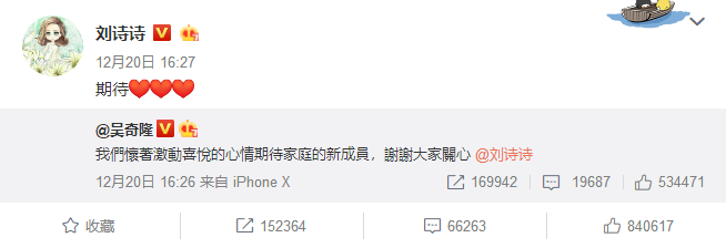 沉寂了多时的娱乐圈,终于迎来了一件喜事。吴奇隆和刘诗诗昨天下午4点多官宣了怀宝宝喜讯,恭喜恭喜了。