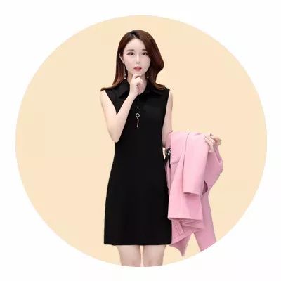 包邮 假两件过膝连衣裙,气质简约优雅显瘦
