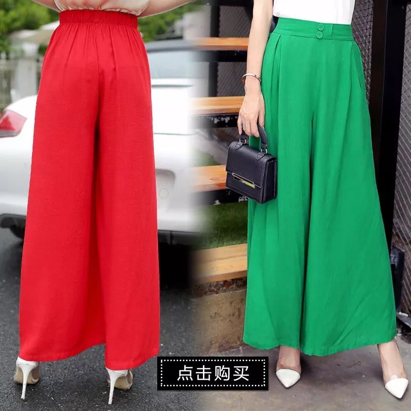 包邮 高腰亚麻九分阔脚裤,面料垂感舒适