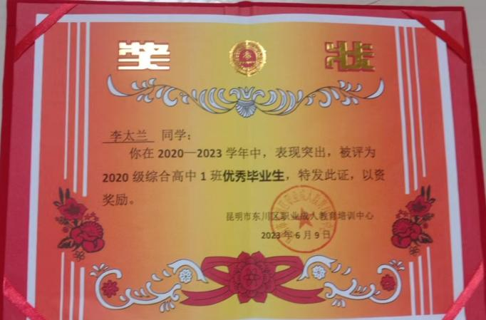 李太兰,女,2003年9月1日出生,东川拖布卡奚家坪村人,经济管理类,20级综合高中(1)班的学生。在校期间获得的荣誉:2021年荣获校内“金话筒”主持人比赛第二名;2021年荣获校内“政治”知识竞赛一等奖;2021年荣获校内“语文”演讲比赛二等奖;2022年荣获国庆朗诵比赛二等奖;2023年荣获昆明市第四届“云岭杯”中华经典诵写讲大赛(学生组)二等奖。