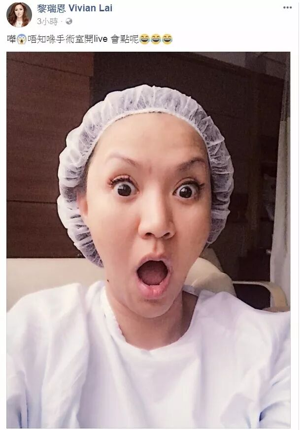 最近复出举行演唱会与开制作公司的香港艺人黎瑞恩,今天突然在社交网站上留言贴照片看到黎瑞恩,穿着手术袍与带着帽子她留言说:“不知道在手术室唱歌会怎样呢?”