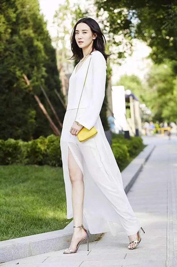 穿高开衩裙装的目的只有一个,让别人仰望你的长腿。
