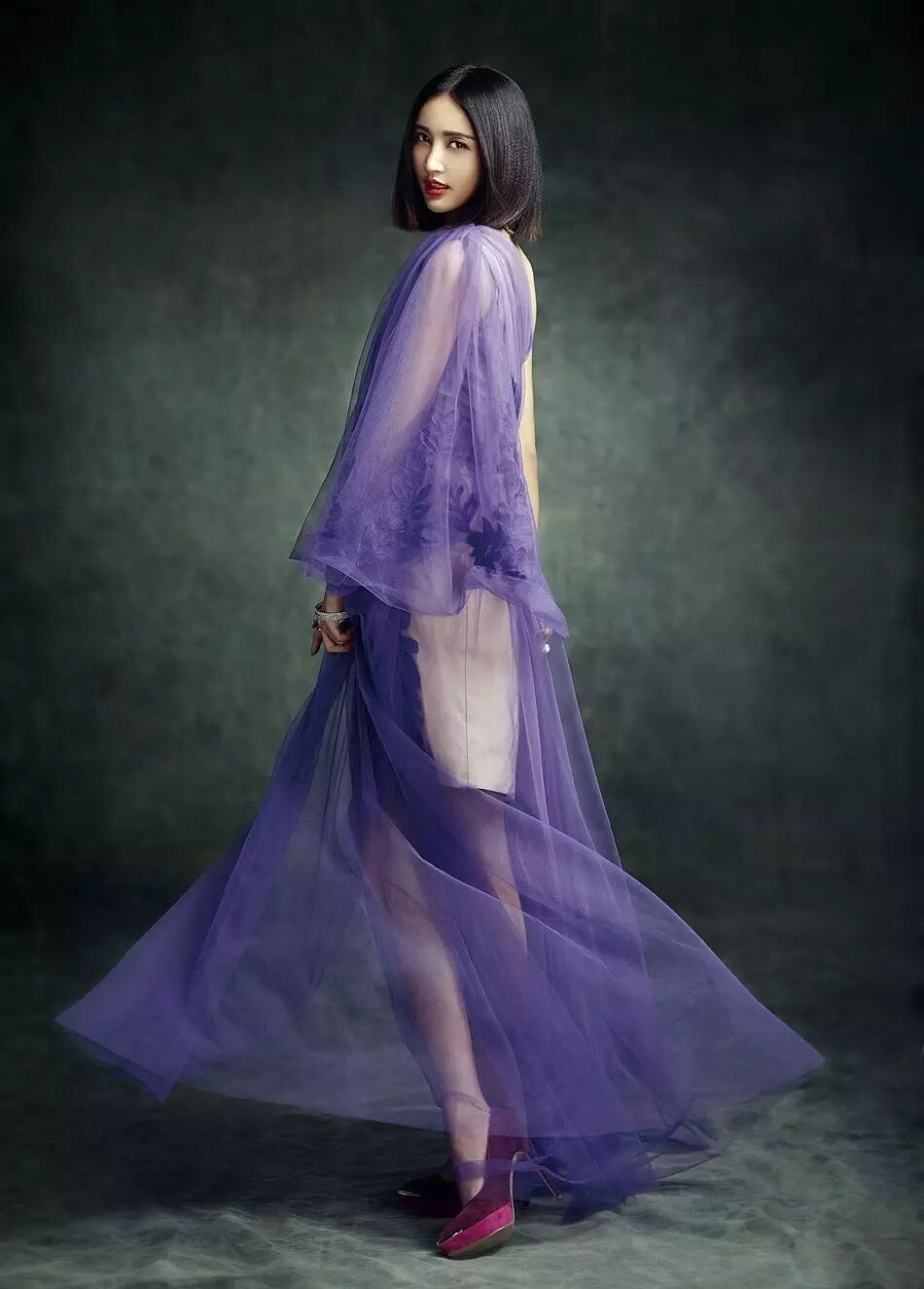 人美比例好,这条我们凡人穿上就及踝的蓬蓬裙,穿到江疏影的长腿上,就是惊艳的公主风。