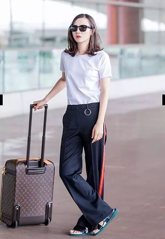 白T恤+运动风阔腿裤,登个机还能帅成这样!