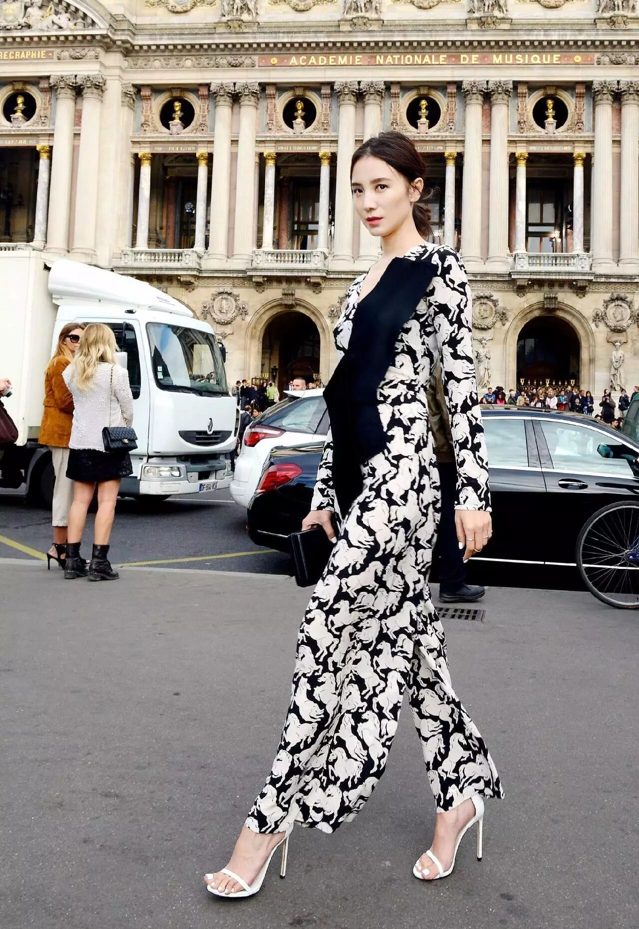 宋佳是最会穿裤装的女明星之一,大长腿藏起来就是 优!雅!小马图案连体裤+白色高跟鞋,想要2米长腿就得这么穿。