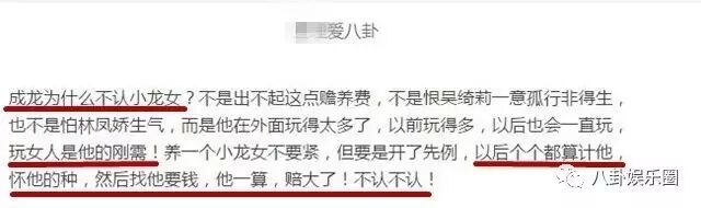 以前都说成龙是因为吴绮莉才不认小龙女的,理由不充分。 小编觉得下面这个网友的评论最靠谱:
