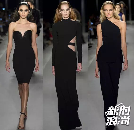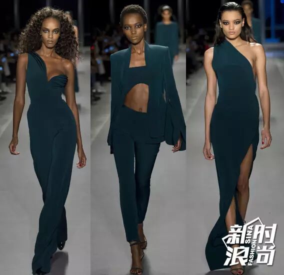 深绿色以及黑色晚装,用镂空的剪裁以及性感的贝壳款式胸部设计,结合着天然的肌肤摇曳生姿。高开衩的裙摆以及单肩上装,将女人最神秘的部分若隐若现。