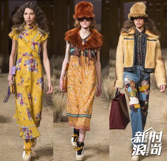 自从Stuart Vevers掌舵Coach以来,年轻化的设计一下子打破了传统印象,本季标志性的碎花依旧出现,他们结合着保暖的外衣做着时装对于实用的注解,单品部分帽子和本季的鞋子成为亮点,毛茸茸的棒球帽和礼帽搭配贝壳头登山鞋,模特在秀场中布满的野草间前行,直接把T台带入了远方的原野。
