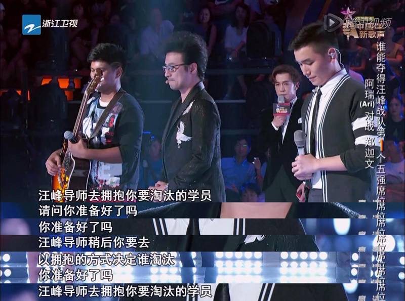 第一轮对战的是阿瑞和郑迦文,两个人一个热情火热,一个腼腆深情,阿瑞演唱经典歌曲《Beat It》,还顺便融进了汪峰导师的《一起摇摆》,他又唱又跳,脑门儿上大汗淋漓。而郑迦文翻唱的是《Goodbye My Lover》。在淘汰学员时,汪峰在阿瑞和郑迦文之间陷入纠结,李咏开启念咒模式,喋喋不休,“你准备好了吗”“去拥抱淘汰的学员”……