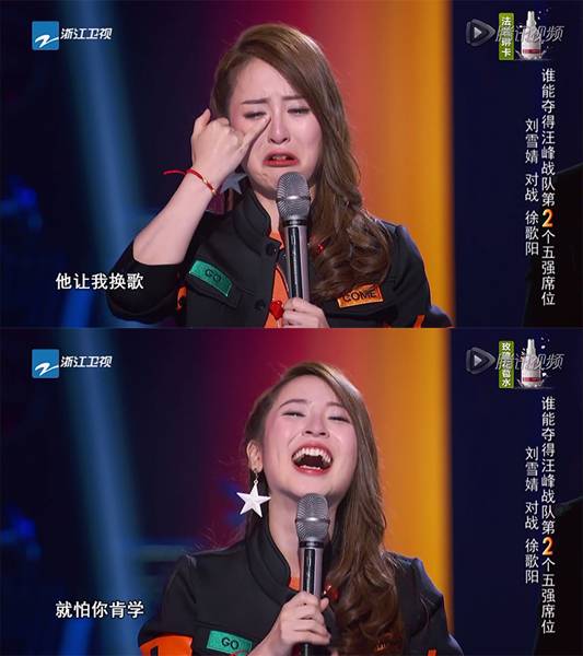NO.8本期节目中,小编第一次发现有人竟然能如此迅速地在哭和笑之间转换,刘雪婧就是这样一个讨喜的姑娘,连那英都表示她的心被刘雪婧弄得一会上一会下。看来小姑娘的功力不浅。