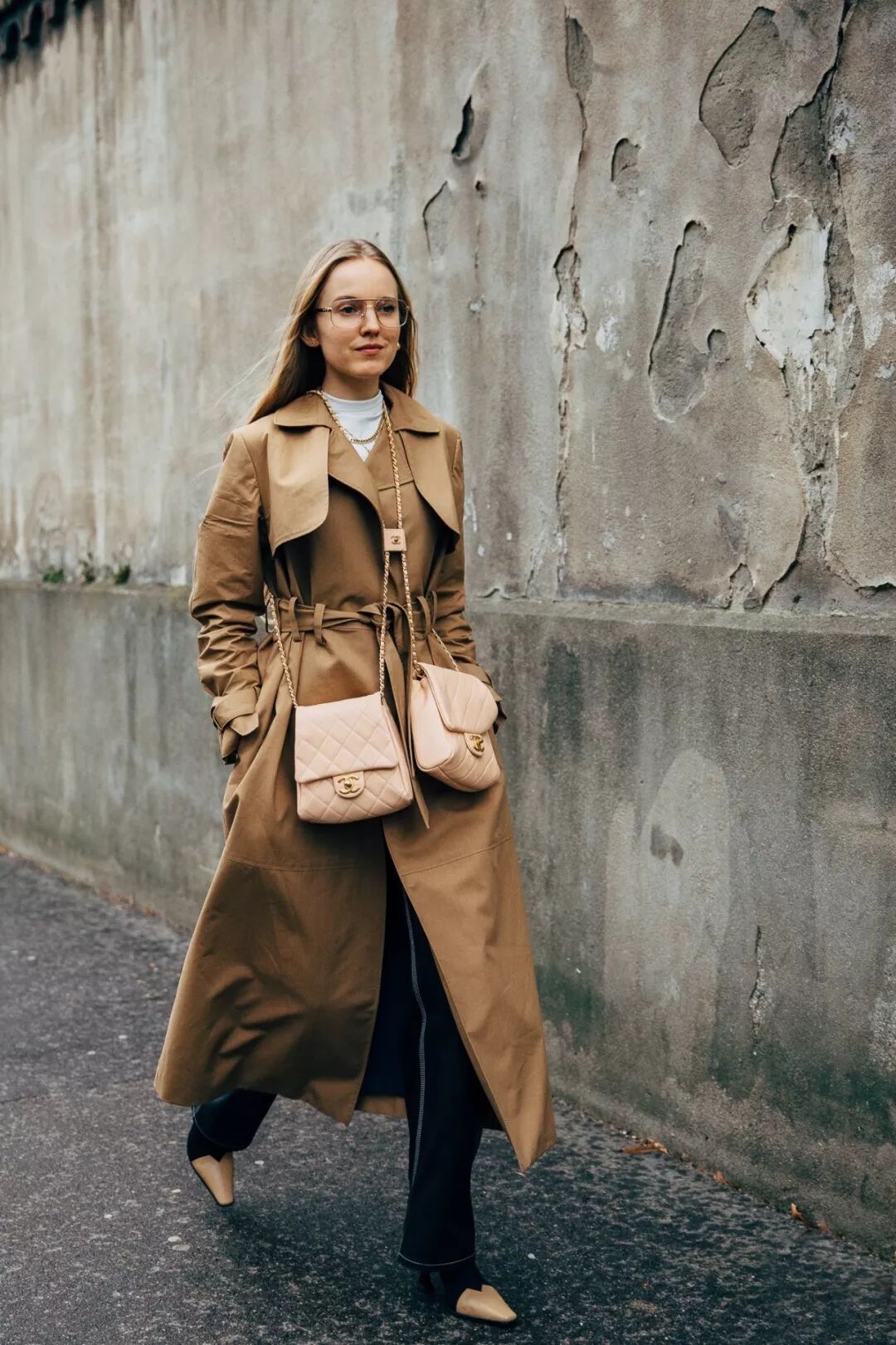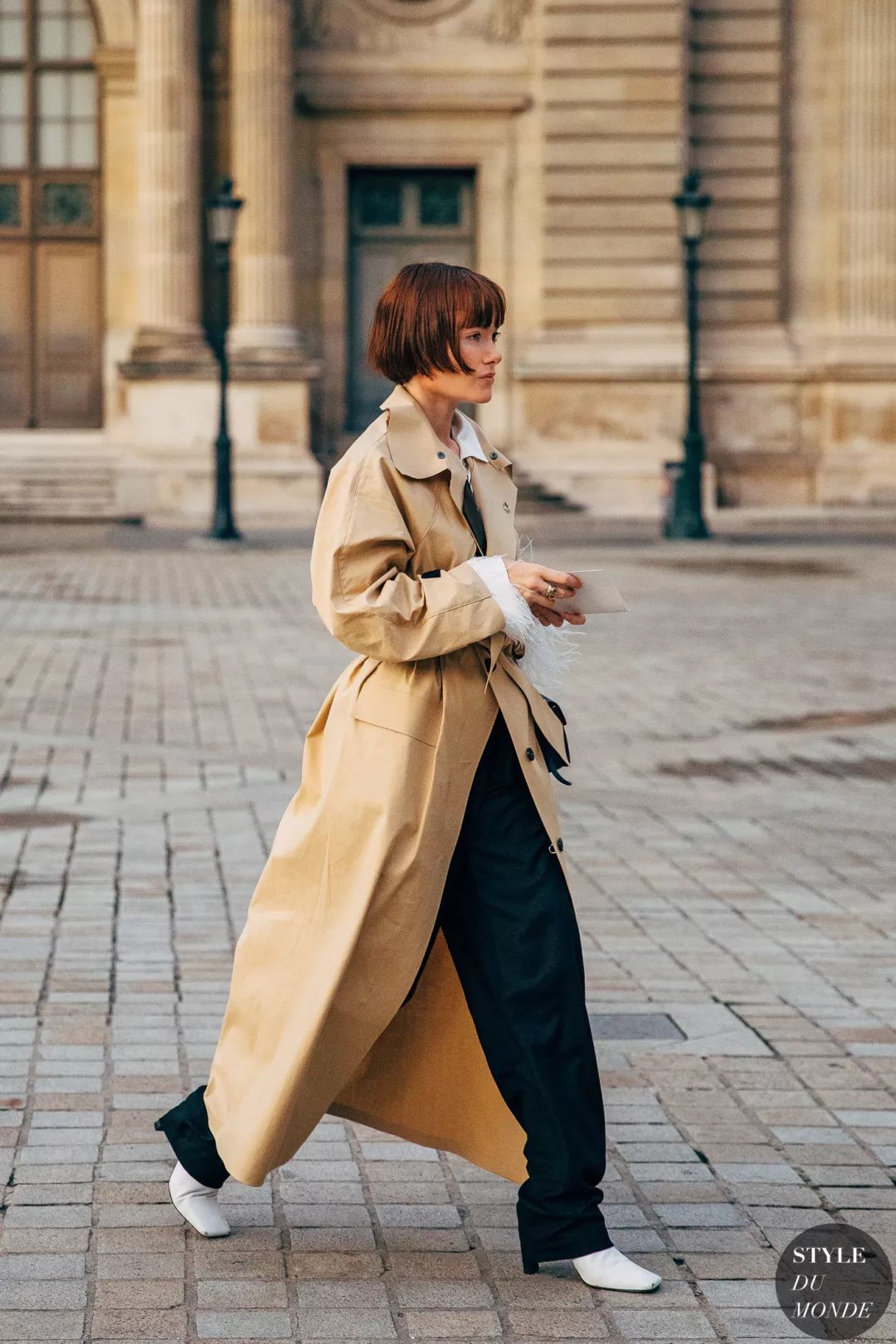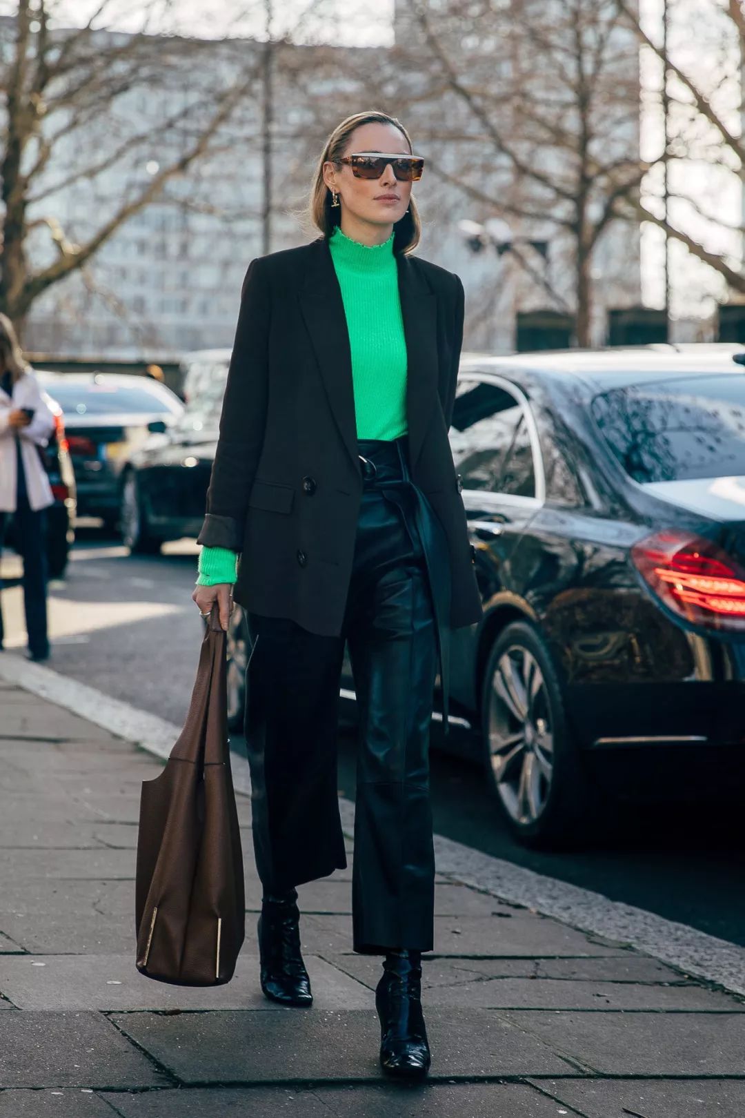 X型呢大衣+阔腿裤的组合也更适合高妹,小个子也能穿,不过一定要搭尖头鞋。