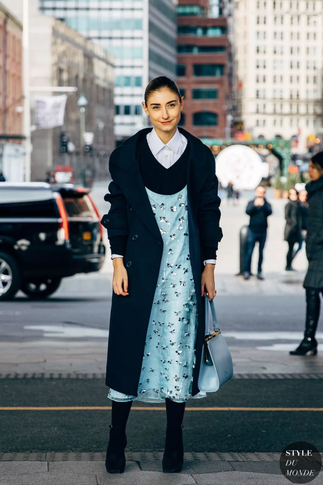 别担心尖头靴太过“凌厉”会让你看上去不好惹,不是还有轻盈的小裙子嘛~柔软、娇媚,它能一次性帮你补足