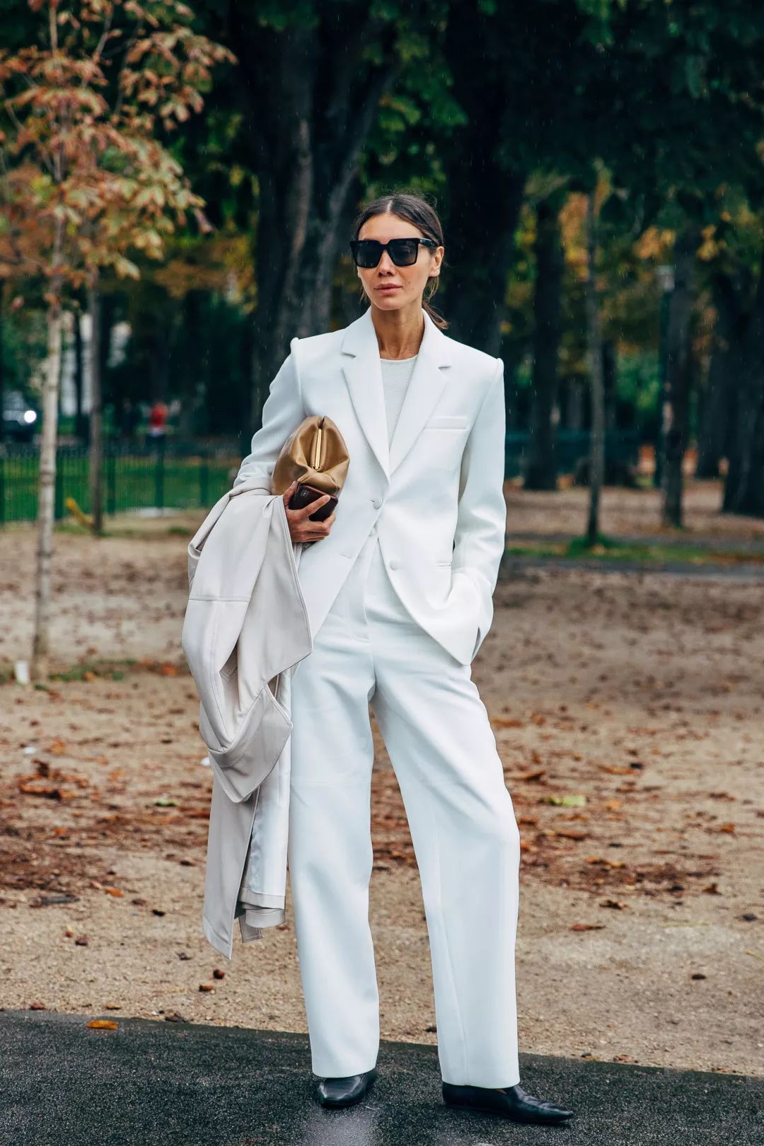 大高个则可以敞开穿,优雅中会多一份随意感~但露出的内搭要强调腰部分界,并且这条界限越高越好,还是那句老话:腰在哪,腿到哪。