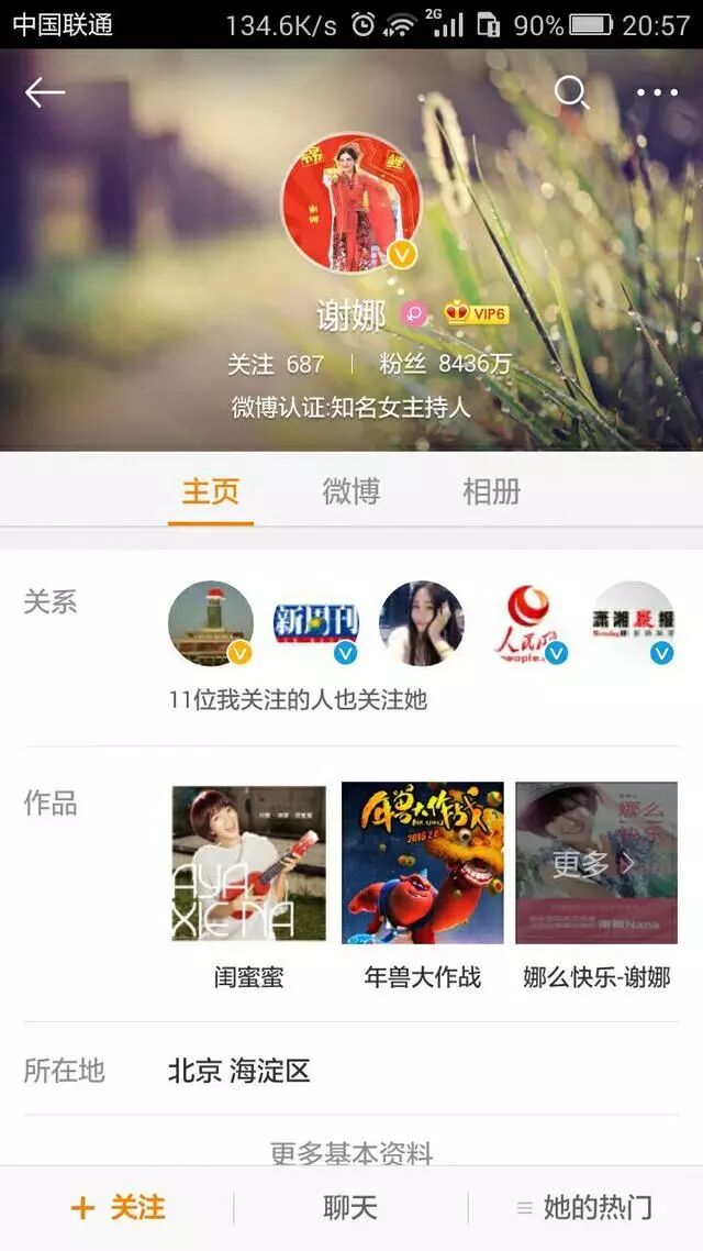 张杰的新浪微博粉丝量为3684万,而谢娜的新浪微博粉丝量为8436万。大家都看出了吧!一个3684万,一个为8436万。巧合在何处?张杰的微博粉丝量从倒数第二位数,也就是8开始依次往前读就是8436,而这个数,真好是谢娜的微博粉丝量:8436万,同样,谢娜的微博粉丝量也从倒数第二位数,也就是3开始依次往前读,那就是3684。这正巧就是张杰的微博粉丝量3684万。是不是很蹊跷、巧合呢?