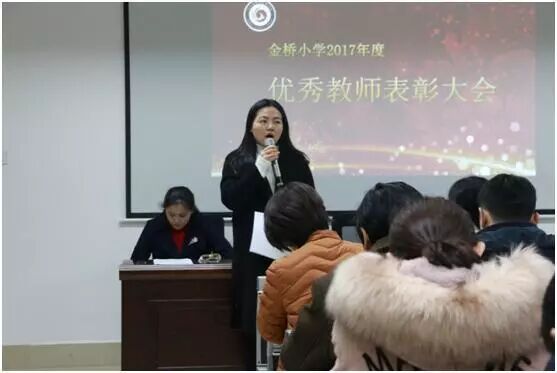 2018年3月19日,金桥小学于会议室召开了2017年度优秀教师表彰大会,会议由周银宇主任主持,全体教师参与会议,会议共三项议程: