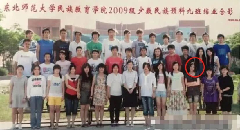 而这张大学合照能够看的出来热巴十分出挑,不知道算不算是他们学校的校花呢。