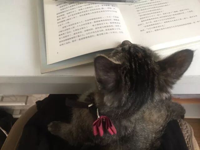 △ 大霾天早晨的孩子与猫,桌上是最近感兴趣的书。