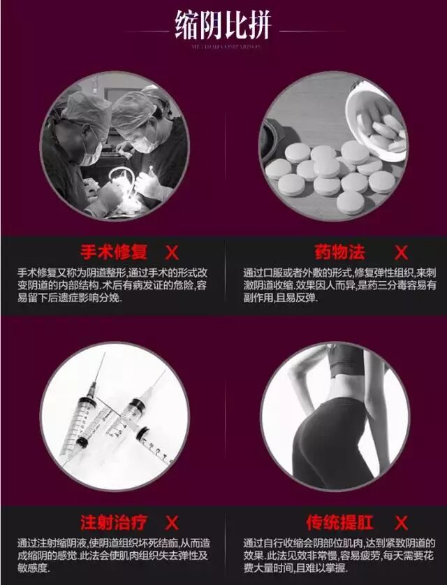 而普通的缩阴手术动辄就上万元,直接祛除 yin道后壁的部分黏膜,缝合以达到紧缩目的,但是也不一定保证能实现真实的紧缩感。还存在手术风险,真是姐妹们的噩梦!
