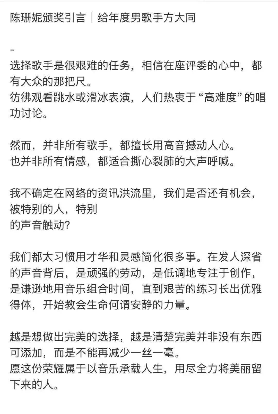这段话成了陈珊妮特有的“啰嗦体”:这个当下,还能说真话,且不忌说,很难得”