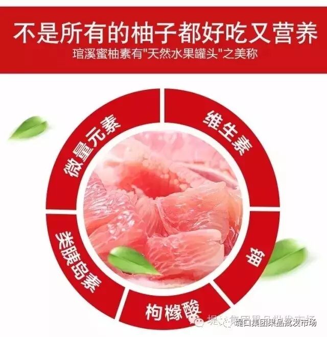 蜜柚每100毫升果汁含全糖9.17-9.86克,可滴定酸0.734-1.011克,维生素丙48.93-51.98毫克(最高61.78毫克)。据中国原子能科学研究院化验,果实含镁、钙、铜、铁、铝、钛、锰、钒、磷、氯等10多种矿物质营养元素。