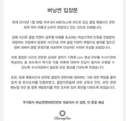 不过没多久,刚说过不会对夜店事件发表立场的YG就公开发了声明。