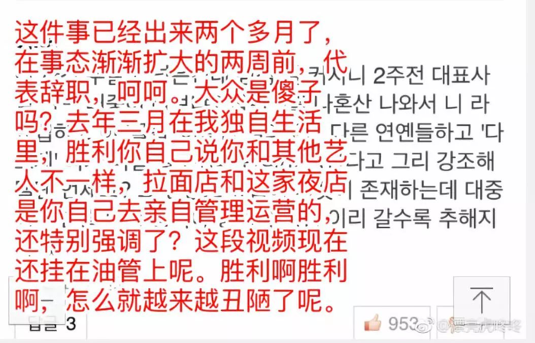 而李胜利这个瓜,才是真正精彩的,其涉及范围之广让人瞠目结舌,以主人公李胜利为圆心,从韩国娱乐圈到新加坡富商,从中国鲜肉到韩国政界,波及人物几乎每天都在更新。
