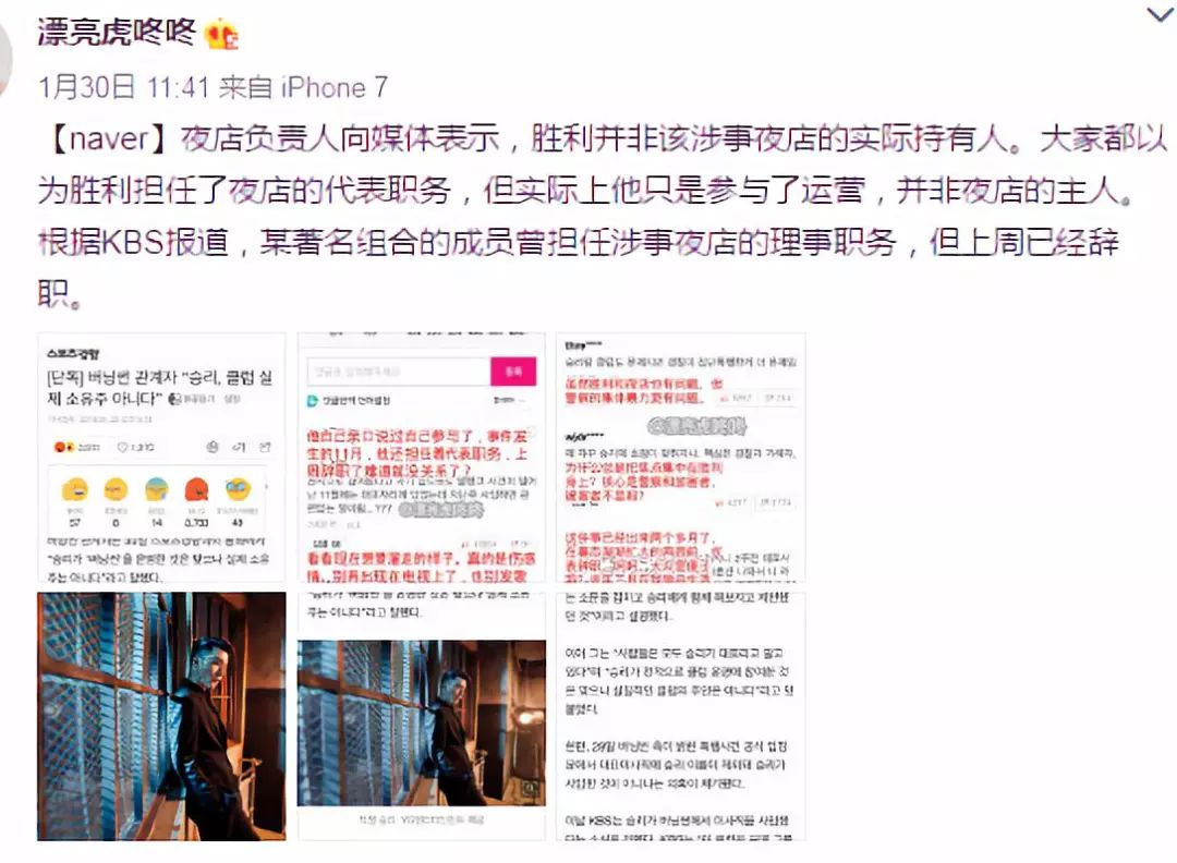 此外,KBS还爆料,胜利在事件曝光前一周已经离职,他的母亲也一起退出了Burning Sun的职务。