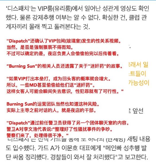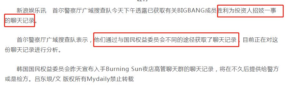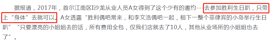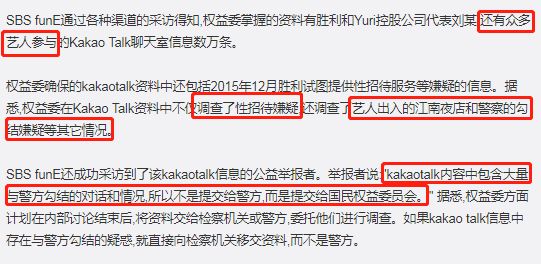 不过sbs的瓜比较新颖,除了已经扒烂了的毒品和性暴力问题以外,他们表示自己还拿到了李胜利和相关人士的聊天记录,并且有充分的证据证明李胜利性招待投资者。