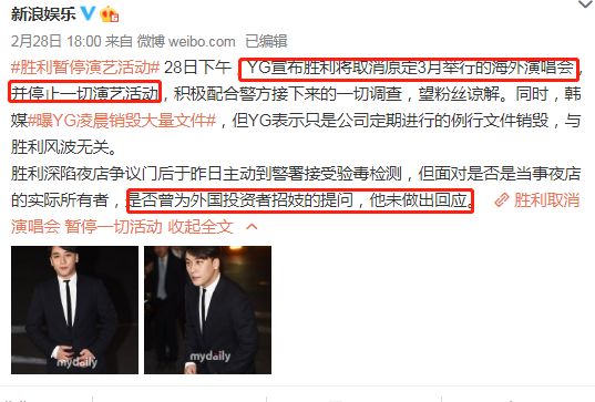 2月21日,韩国警方宣布将包括胜利在内的夜店全部经营人员全部纳入了调查范围——